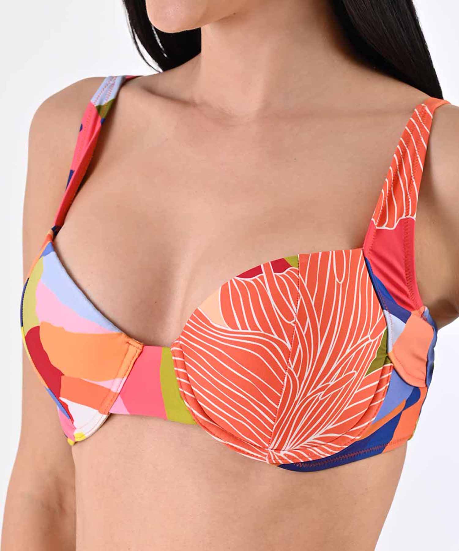 Top preformado con calzón alto. Pierna baja. Ajuste: Petite.