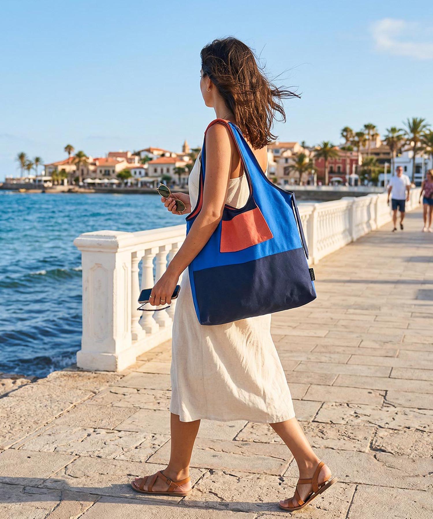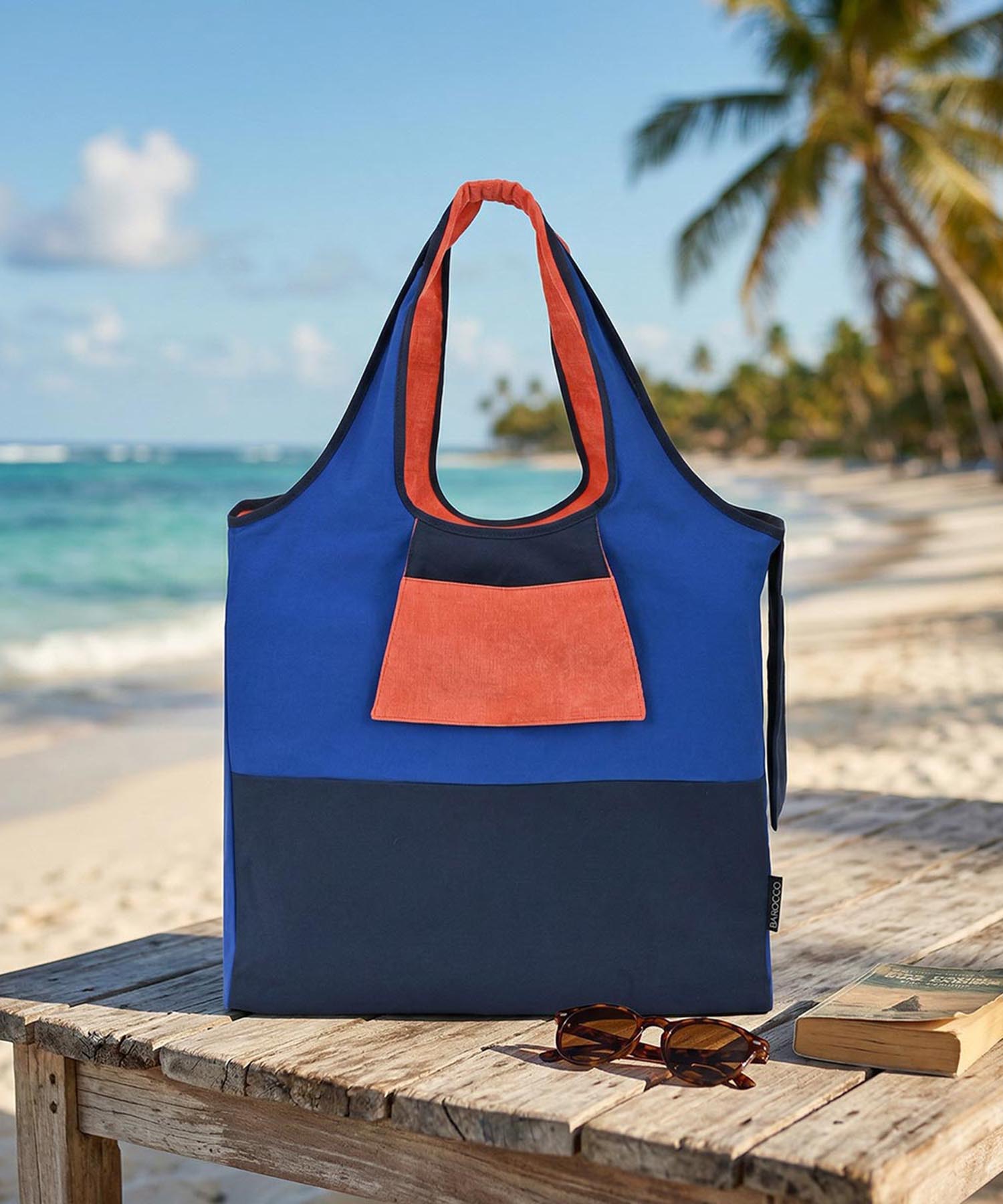 Bolsa de playa doble vista. Talla mediana. Estampado naranja.