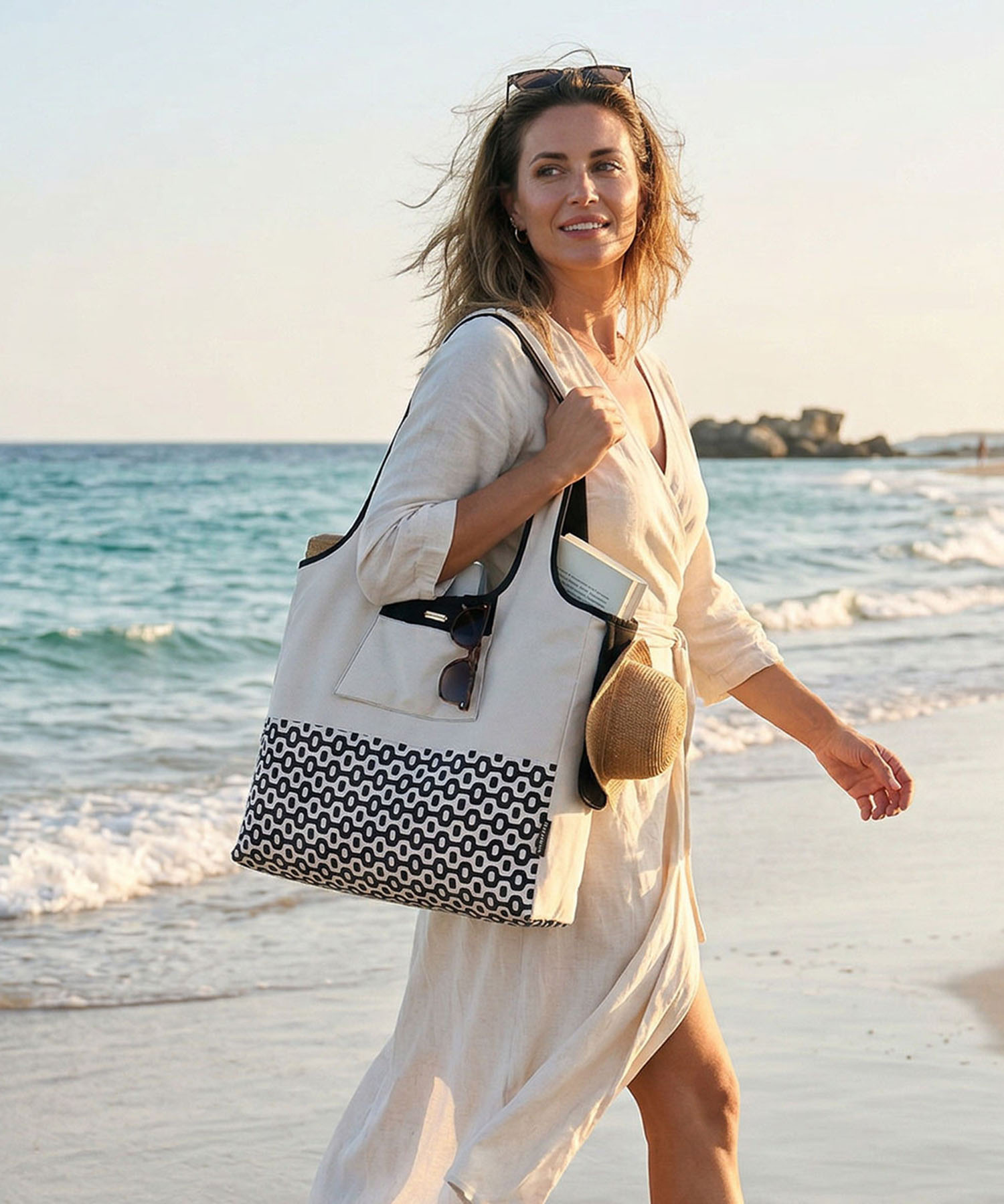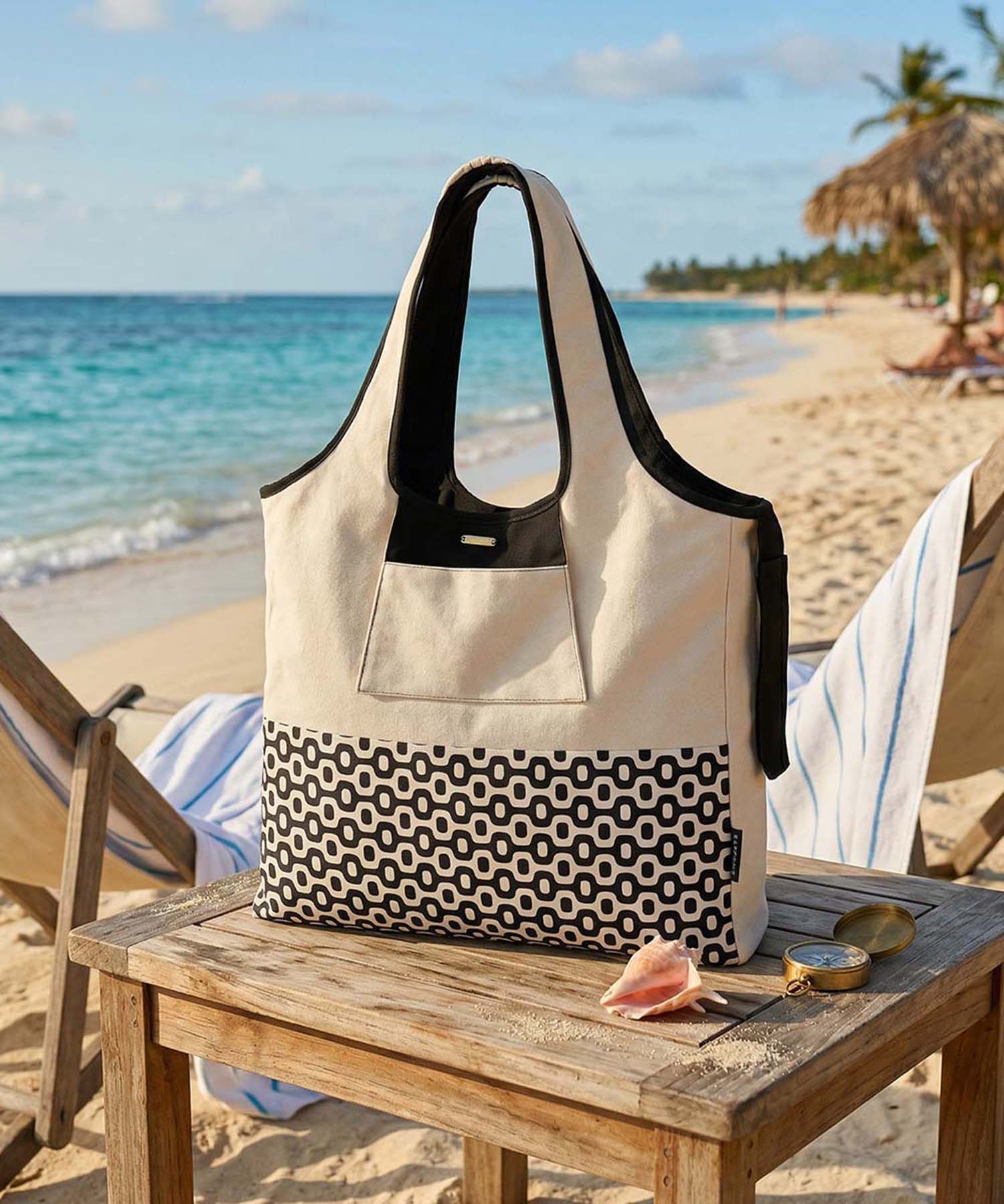 Bolsa de playa doble vista. Talla mediana. Estampado base blanca.