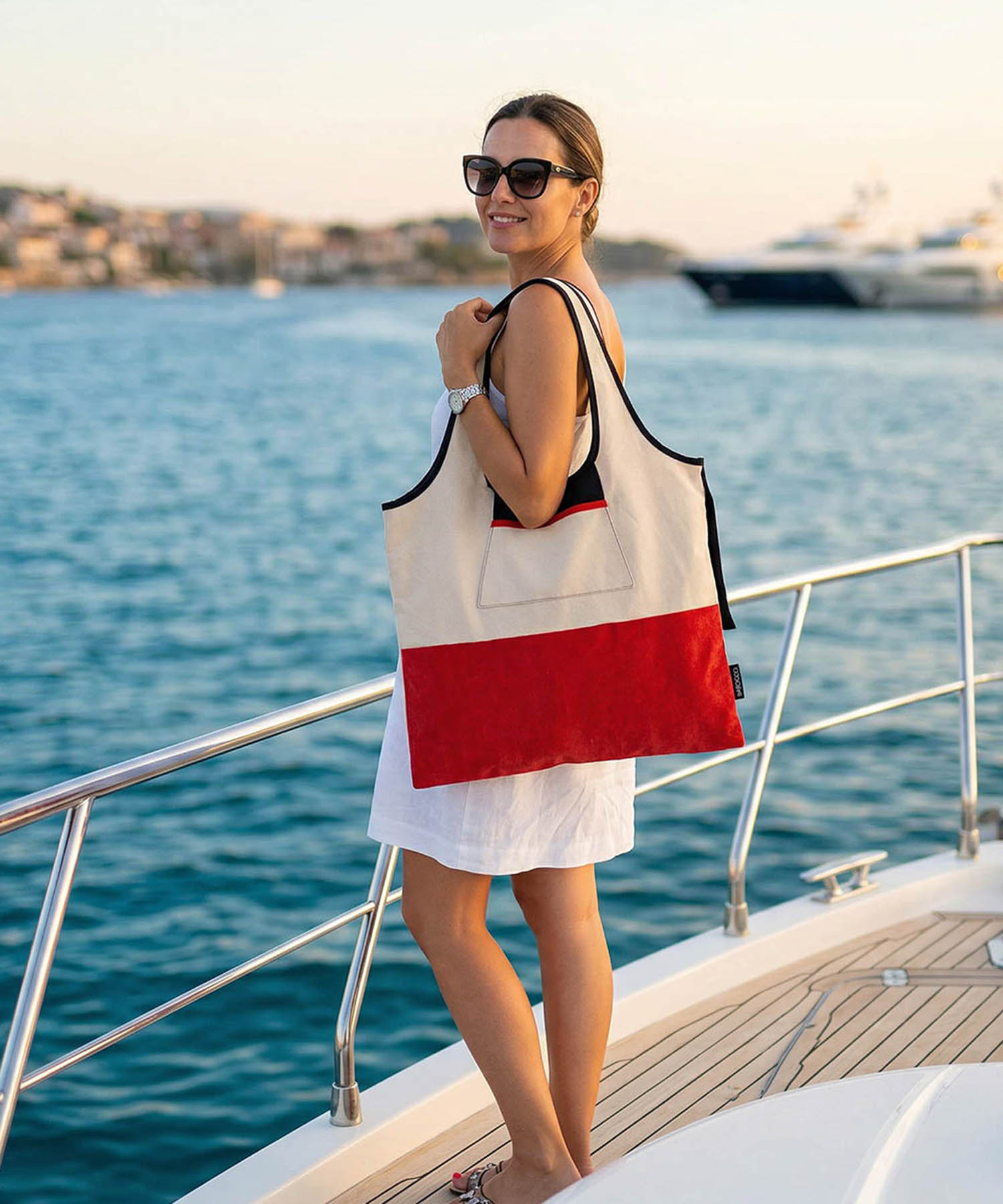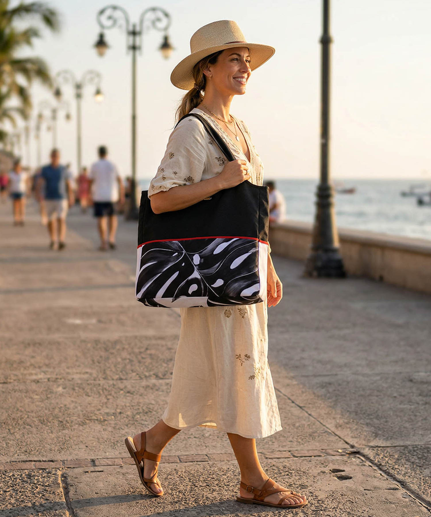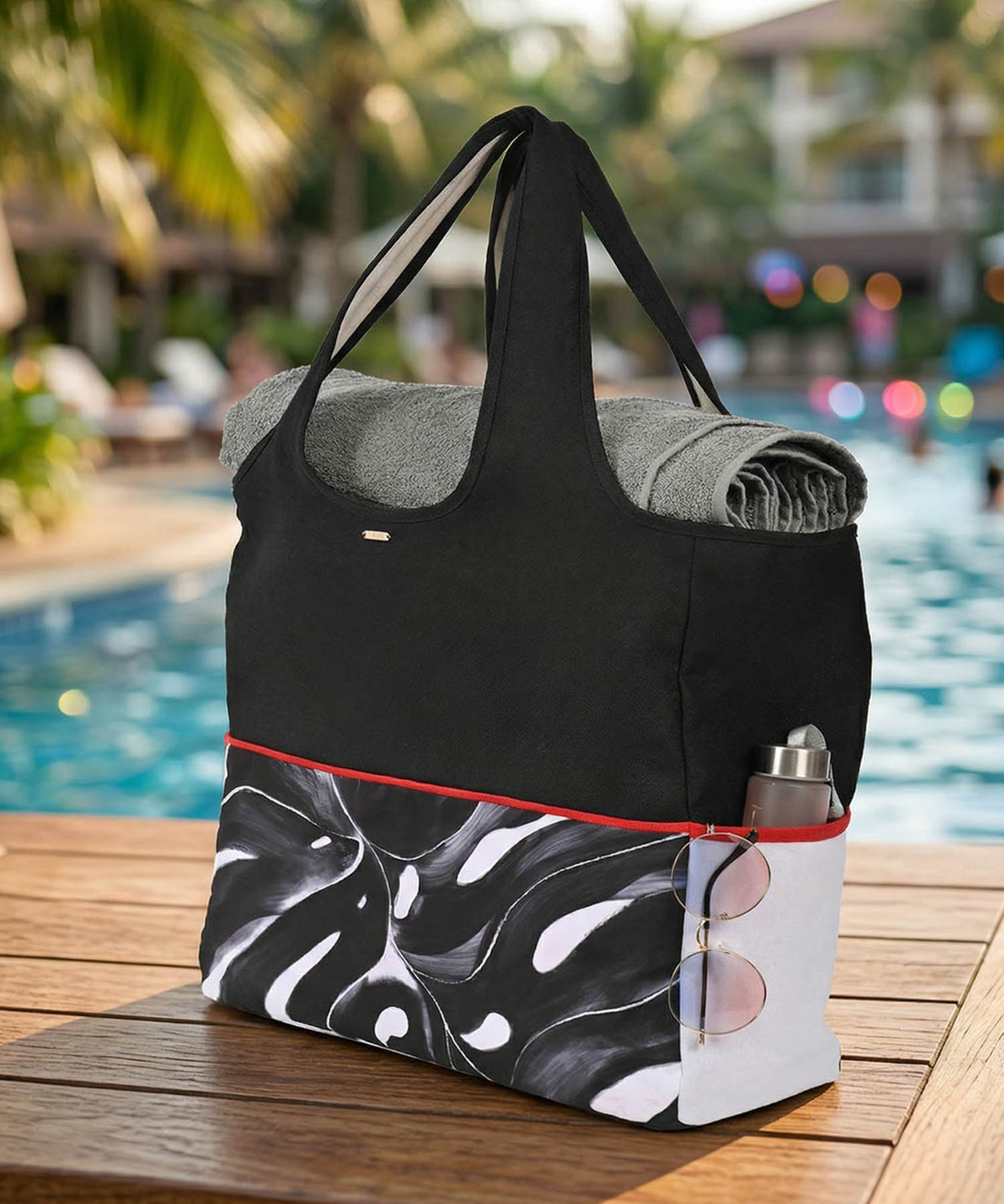 Bolsa de playa doble vista. Talla mediana. Estampado Negro